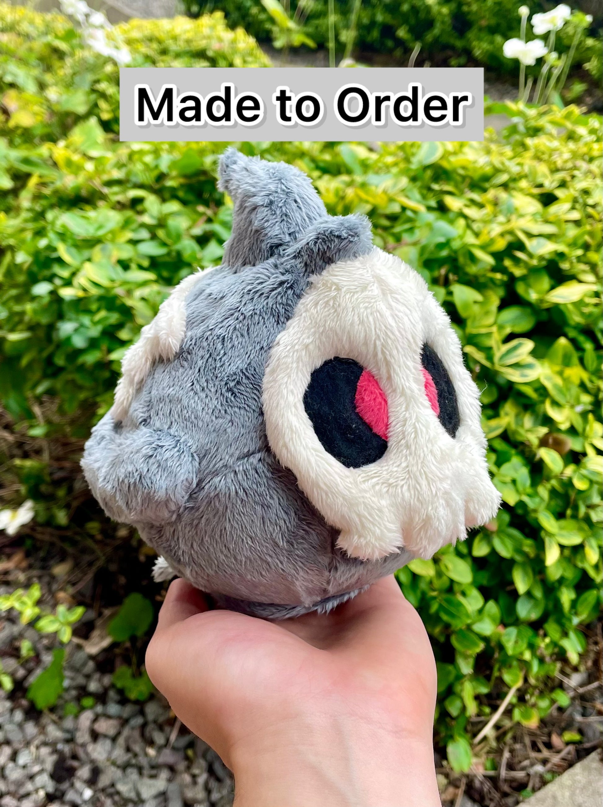 Introducing a new, made to order, plushie! This plush is made of a super soft minky plush fabric, with a slight longer pile than normal, which makes it ultra soft. Additionally, the plush is stuffed to perfection, with the applique pieces on the skull mask adding super soft details. The plush has got poly pellet beads in the bottom of the body to keep the plush stable in sitting upright, and is super satisfying to hold. You can pick between the normal grey colour, or the deep shiny red.