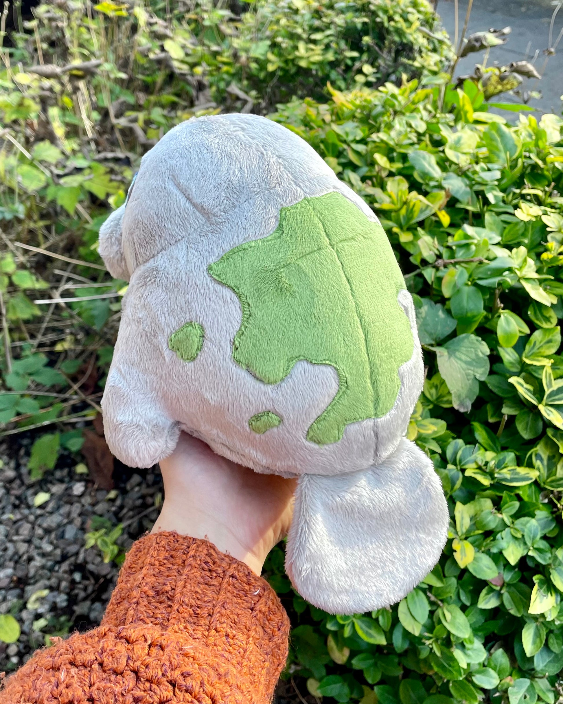 Hand Crafted Plush - Soft Grey Manatee with Mossy Green Algae, Ready to Post