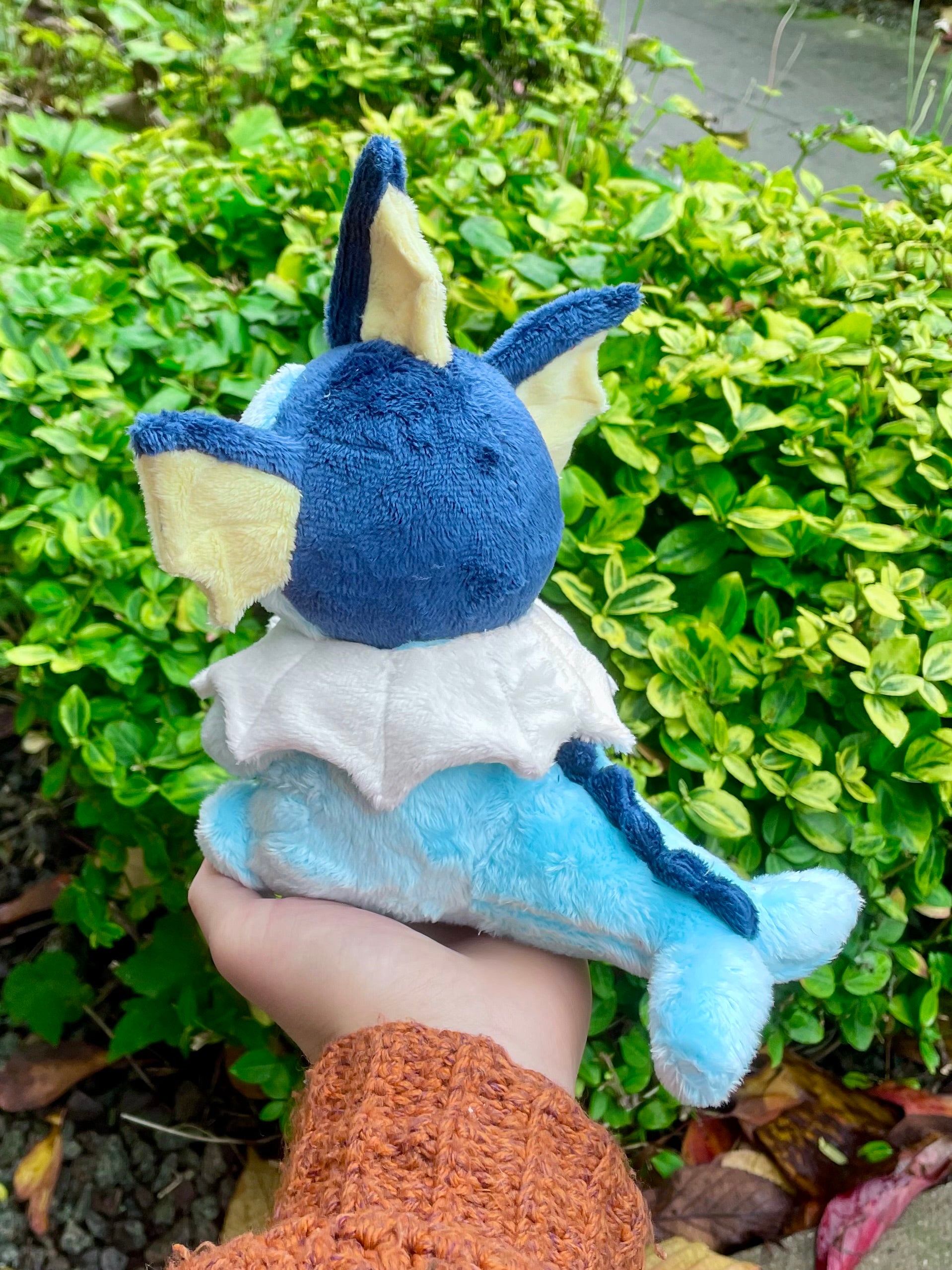 This super soft plush is adorned with beautifully fins, a tail and beautifully big eyes, with a little frill going down the tail. The torquise, deep blue and pale yellow fit really nicely together and really brings that water aesthetic. The sitting position is not only absolutely adorable, but it means that the plush sits independently, perfect to be displayed anywhere! The Minky plush fabric is so soft to cuddle, so makes a wonderful gift to another, or yourself. This plush is roughly 9” tall and 5” wide.